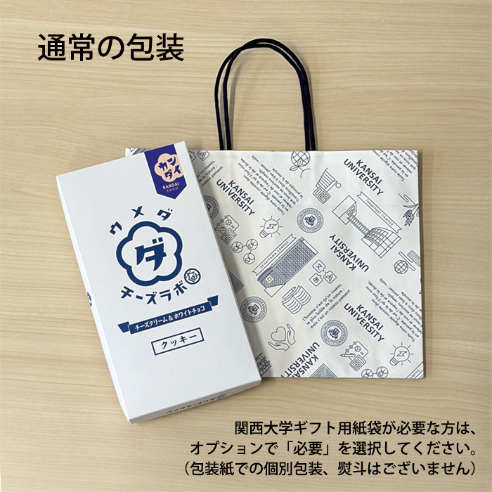 チーズが程良いアクセントとなっており、甘いものが苦手な家族からも大好評でした。敢えて改善した方が良い点を挙げるならば、パッケージをもっと関大をアピールするデザインにしていただくと、贈答品として用いる場合、関大の話題で場が盛り上がると思います。