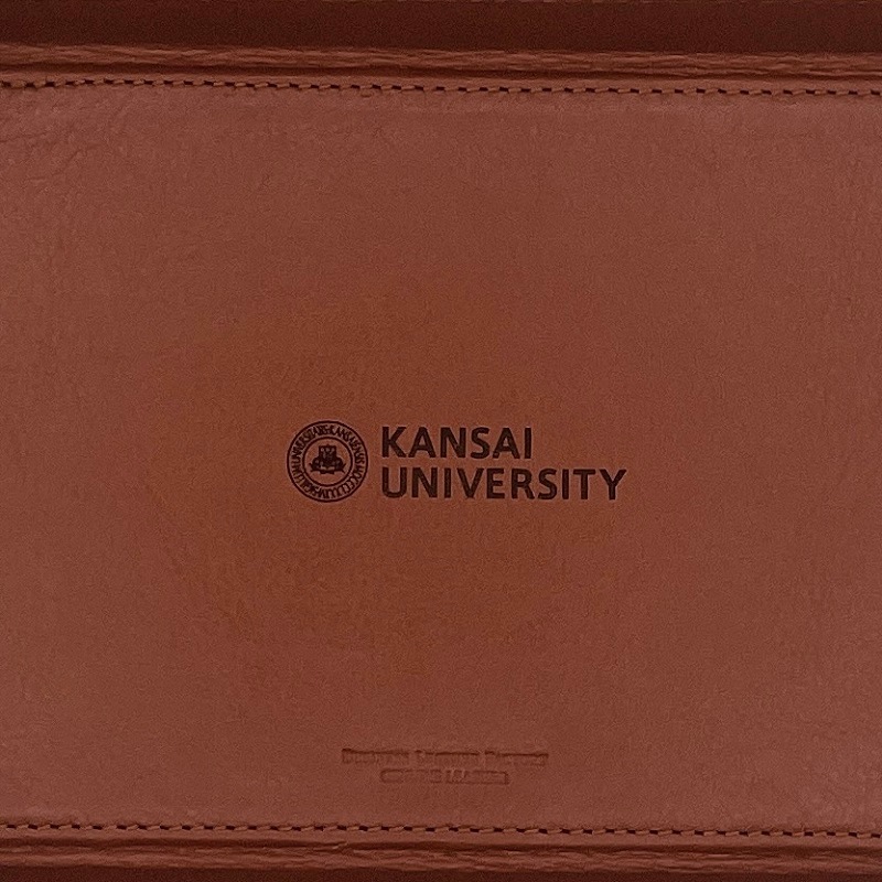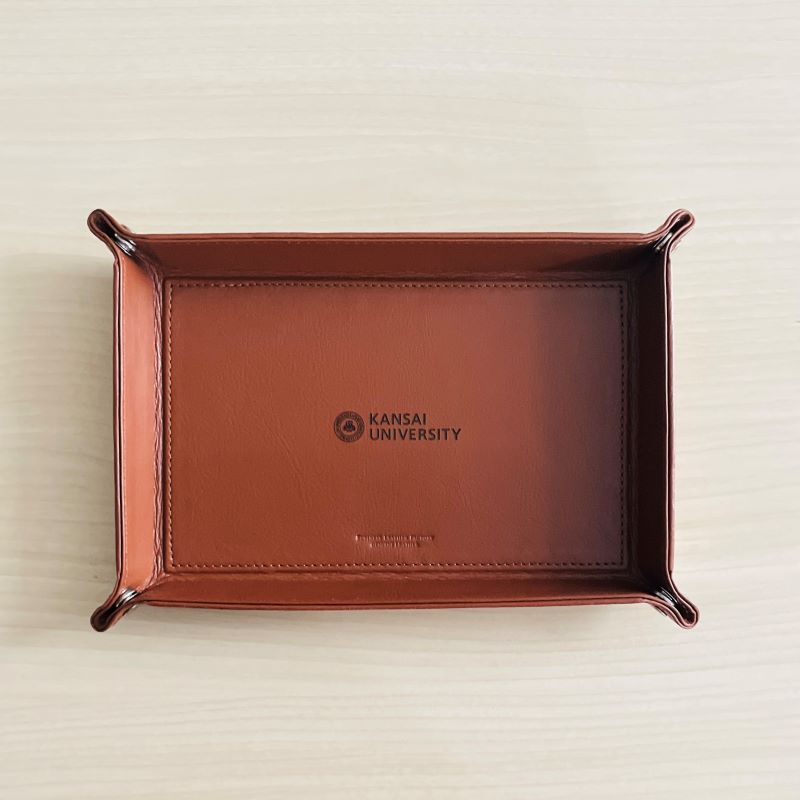 革製品を取り扱うブランド「ビジネスレザーファクトリー」のレザートレーです。中央には関西大学のロゴをさりげなくレーザー刻印しました。