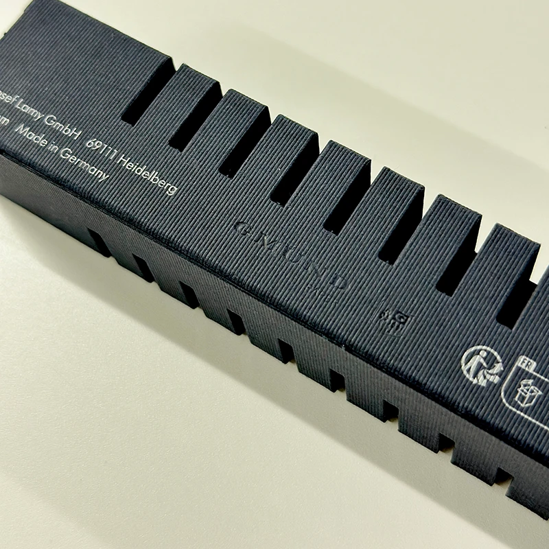 「LAMY safari」シリーズのグリップ形状は、三角形の断面を持つ特徴的なデザインで、握りやすさと快適さを追求し、長時間の使用でも手が疲れにくい設計となっています。さらにグリップ部分に若干の膨らみと凹凸を持たせることで、指の位置を自然に誘導し、筆記時の安定感と操作性を向上しています。