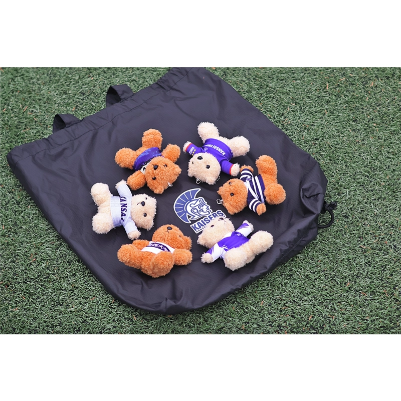 関西大学体育会「カイザーズ」の各クラブのユニフォームを着た、手のひらサイズのふわふわベアが登場!