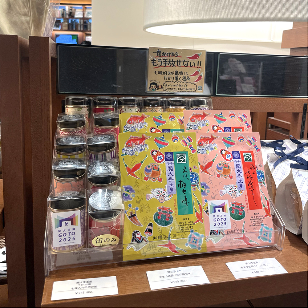 海外からのお客様も多く訪れており、特に やまつ辻田の七味 と 千代の缶 が大人気!