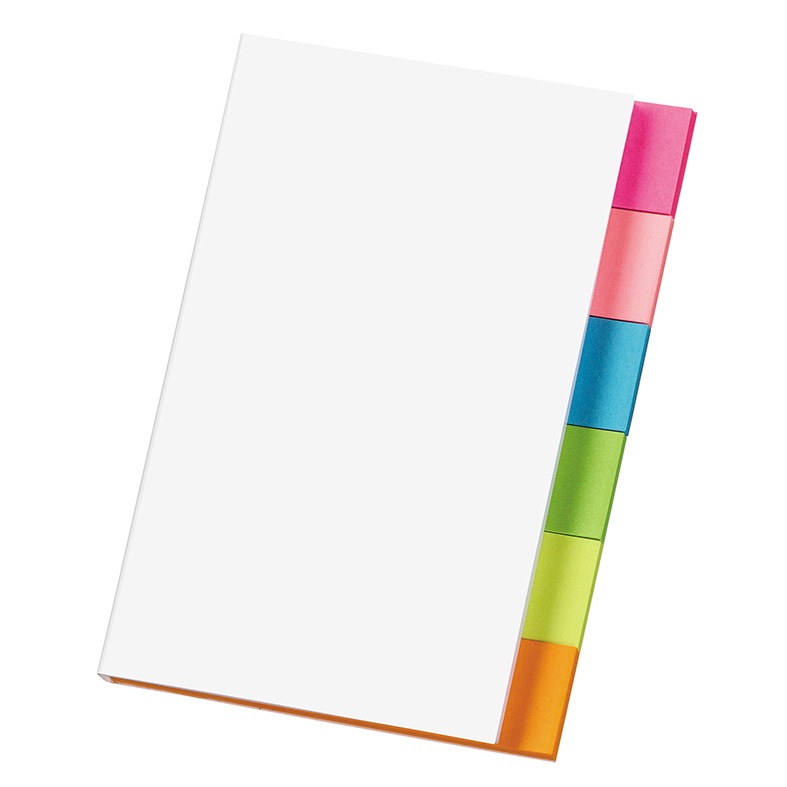 6色のスティック付箋とメモタイプの付箋セットです。端から見えるカラーがアクセントになっています。